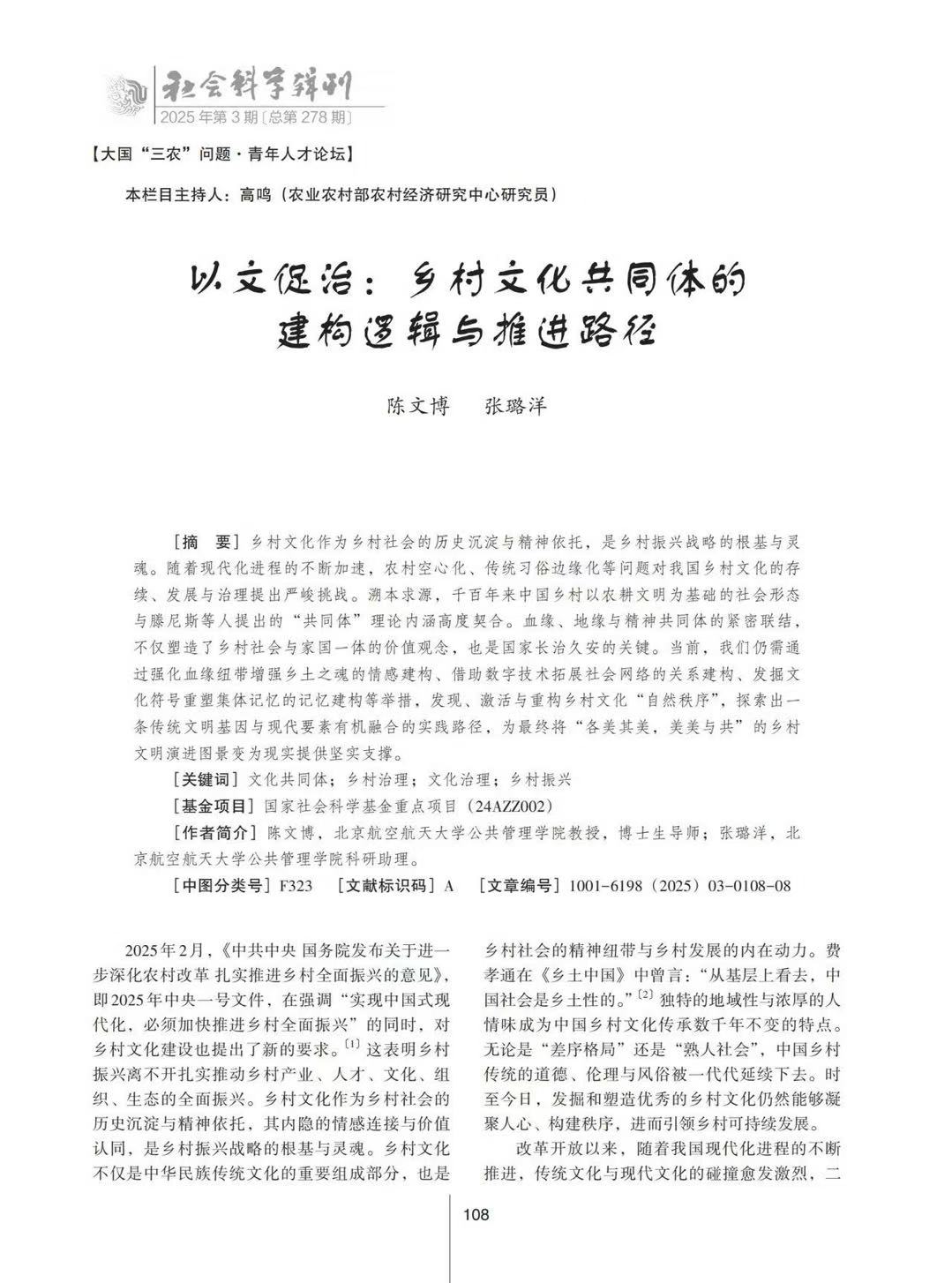 我院教授陈文博、科研助理张璐洋在...近日,北京亚州怡红院人文社会科学学院(公共管理学院)陈文博教授、科研助理张璐洋在《社会...